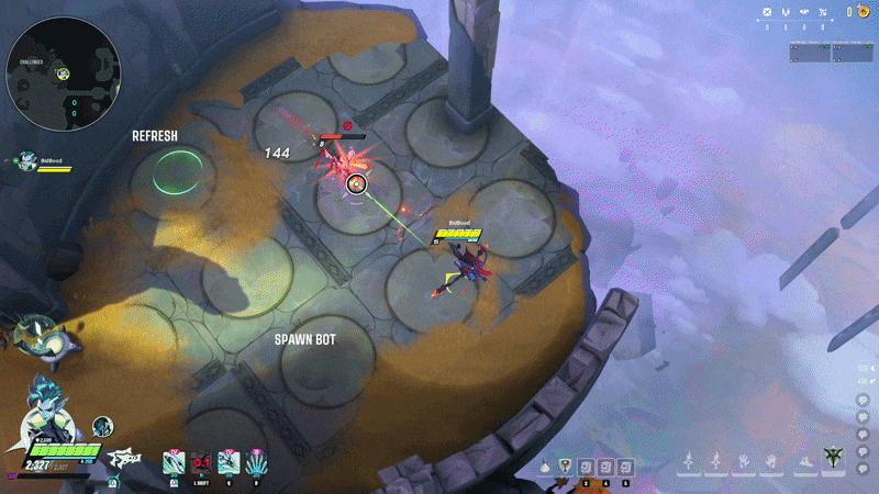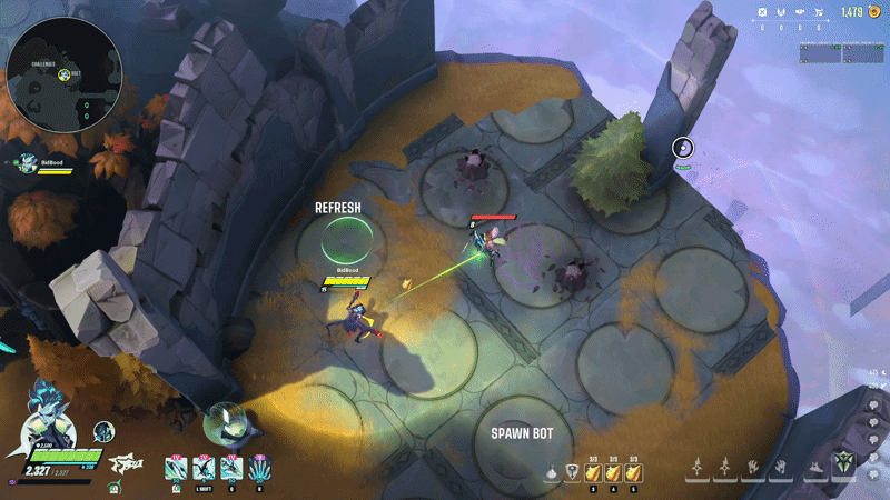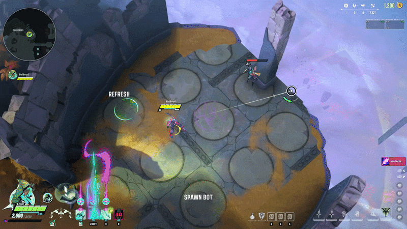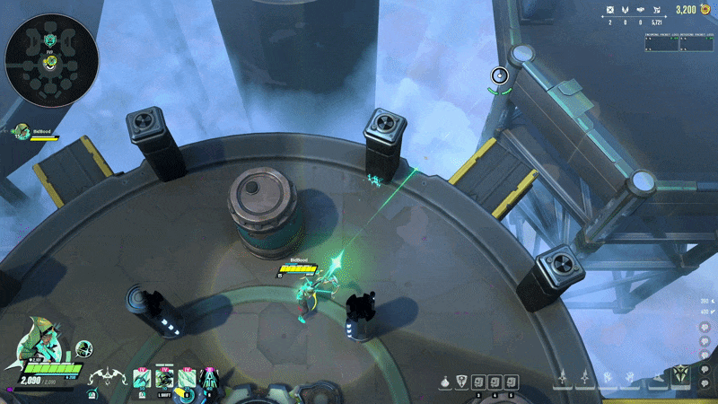 The goal was to add opportunity for “hype, pop-off”-type moments, utilizing the power budget allowed in an ult. Shiv deals excellent sustained damage, but the building and consistent nature of her base pattern felt too flat in emotional pacing. While the ability does this job, overall I consider it the weakest part of her kit.
