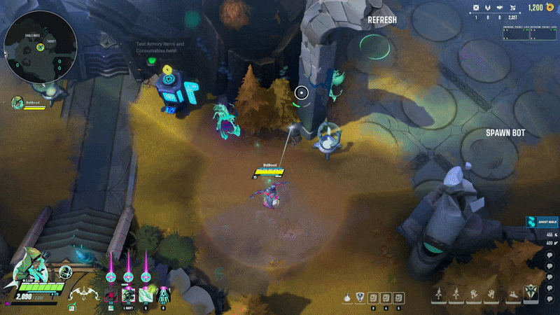 I took ownership of Shiv shortly after joining, not in small part because I one-tricked her in playtests immediately. Her kit didn’t change at a high level (each ability is in the same spot) but I made updates and improvements to each spell and took her through to ship.